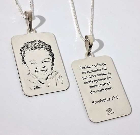 Guarde para sempre momentos especiais! Nossos pingentes em Prata 925 são personalizados com gravação à laser com alta precisão para garantir durabilidade e riqueza de detalhes. A imagem nunca apaga com o tempo, tornando a sua joia eterna.